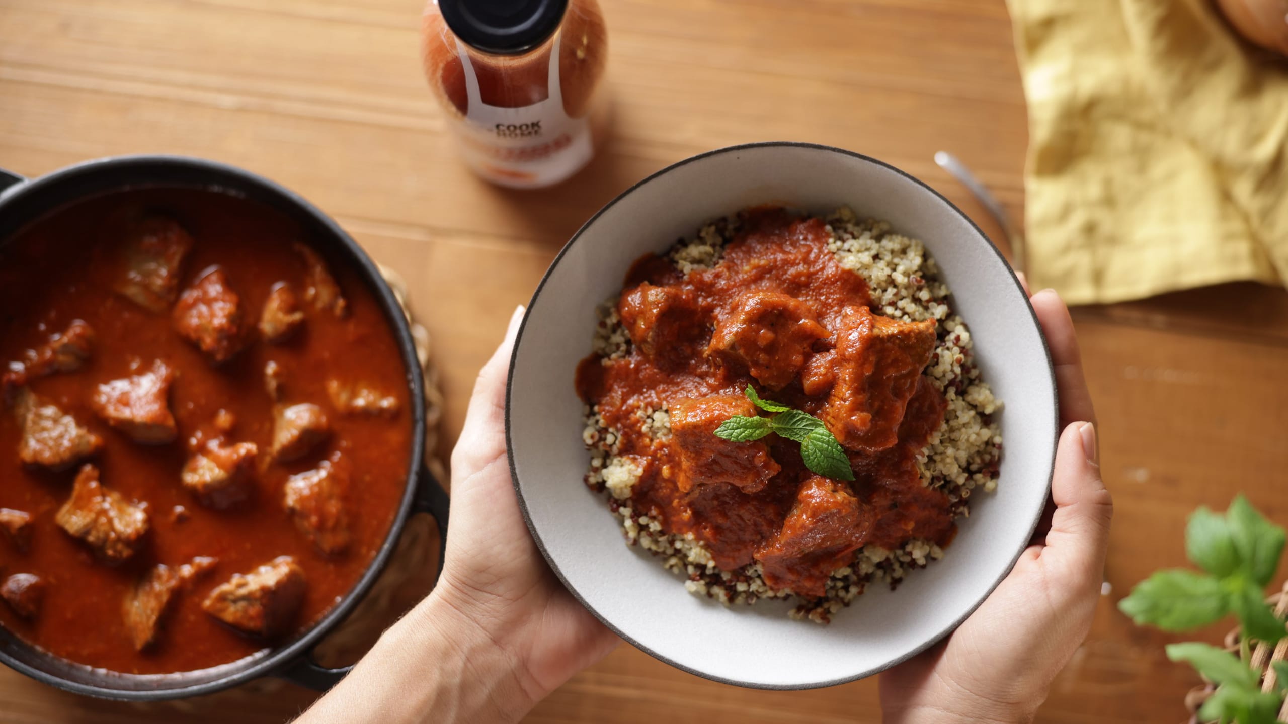 2. Προσθέτουμε όλη τη σάλτσα μαγειρέματος COOK at HOME, περίπου 2 φλιτζάνια νερό (500ml) και ανακατεύουμε καλά. Μαγειρεύουμε με σκεπασμένη κατσαρόλα σε μέτρια φωτιά για περίπου 2 ώρες, μέχρι να μαγειρευτεί το κρέας και να δέσει η σάλτσα. Κατά τη διάρκεια ελέγχουμε το φαγητό και προσθέτουμε λίγο νερό αν χρειαστεί.