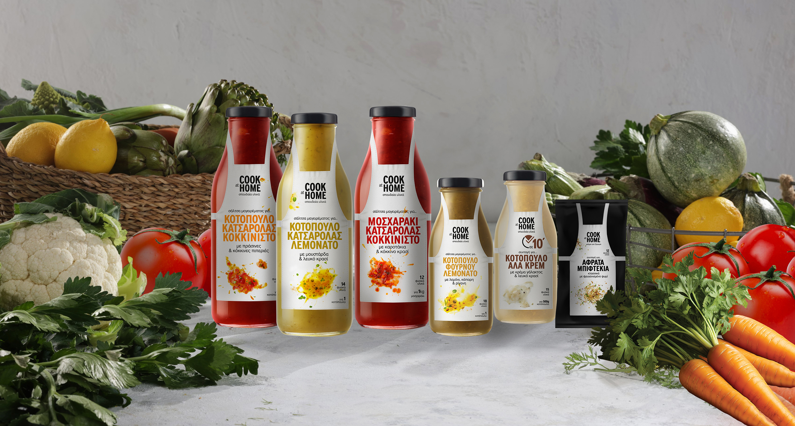 Οι ολοκληρωµένες συνταγές COOK at HOME φτιάχνονται από επιλεγµένα υλικά και διατηρούνται στη συσκευασία τους µε ήπια παστερίωση, όπως ακριβώς και οι σπιτικές σάλτσες σε γυάλινο βάζο.