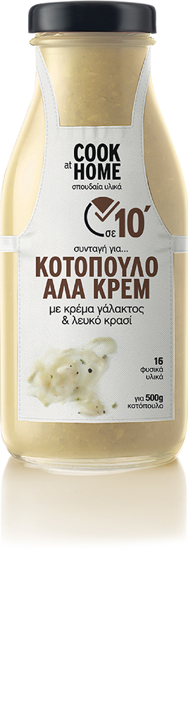 Τώρα μπορούμε να απολαμβάνουμε λαχταριστό κοτόπουλο αλά κρεμ, πιο γρήγορα και εύκολα από ποτέ με τη νέα σάλτσα μαγειρέματος COOK at HOME “σε 10 λεπτά”! Το COOK at HOME “σε 10 λεπτά”, είναι πεντανόστιμες συνταγές, φτιαγμένες με σπουδαία υλικά στις σωστές αναλογίες, για να απολαμβάνουμε σπουδαία πιάτα κάθε μέρα. Μόνο σε 10 λεπτά.